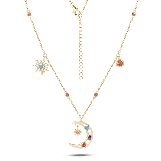 Collier en Argent 925 doré Or jaune 18k assemblée d'Oxyde de zirconium